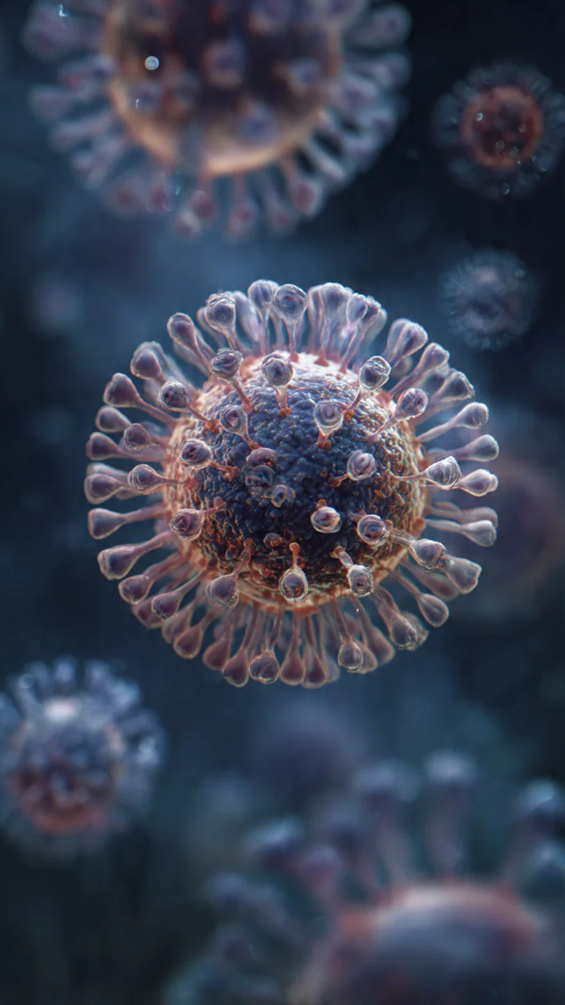 Este vírus não é dos menores, mede de 0.1 a 0.10 nanos (10 ou 100 vezes menor que 1 mm).